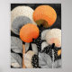 Estas radiantes flores texturizadas sobre un campo negro estrellado presentan una llamativa ilustración floral abstracta que incluye grandes flores circulares en cálidos tonos naranjas, cremas y negros, cada una construida a partir de finas texturas de líneas radiantes y acentos punteados. Hojas alargadas con patrones lineales audaces se elevan contra un denso campo de puntos blancos sobre negro profundo, creando un contraste dramático y una estética gráfica moderna. Diseñado en una proporción versátil de 4:5, esta descarga digital de alta resolución aporta arte luminoso y encanto artesanal a cualquier espacio, perfecto para enmarcar, regalar o mejorar la decoración de tu hogar con elegante elegancia de jardín. #DescargaDigital #botánicaModerna #ilustraciónDePatrones #diseñoDeArteGráfico