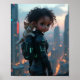 Póster Niña adorable con su gatito