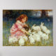 Póster Niña alimentando conejos blancos