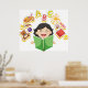 Póster Niña leyendo aprendiendo letras y juguetes del alf
