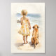 Acuarela de época con una chica y su labrador junto al mar. Perfectamente adecuado para los amantes del perro, los fanáticos del trabajo, los orgullosos propietarios y criadores, celebra el vínculo entre los humanos y sus peludos amigos. Regalo ideal para adultos y niños, hombres, mujeres, niños y chicas