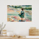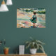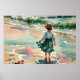 Póster Niña pequeña en la playa, olas acuáticas oceánicas