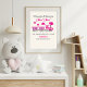Este encantador arte mural para niños muestra un tren rosa lindo en un estilo limpio y simple sobre un fondo de color crema. Frases divertidas como "chugga chugga choo choo" y "todos a bordo del tren de la diversión" invitan a los pequeños a un mundo de juego y descubrimiento. Terminado con un nombre personalizado y "nueva aventura", es un complemento encantador para guarderías y dormitorios de niños.