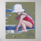 ¿Una niña con Gorra jugando en la arena con olas de playa alguna vez juegan en la playa con un niño? ¿Has jugado con la humedad de las olas y la arena de la arena? Se trata de un bonito cuadro de una niña que toca con las pequeñas olas en la orilla de la playa, un hermoso regalo para el luchador de la playa. Lleva puesto un traje de baño rojo y tiene un gran gorra blanco para protegerse del sol. El bebé de la playa es feliz jugando solo, concentrándose totalmente en la sensación de que el agua resbaladiza se balancea a través de las manos. Es un día de playa - un maravilloso día de playa para una niña, con un montón de agua salada para jugar, y un mundo de arena de playa para encontrar conchas, castillos de arena esculpida, y simplemente holgazanear al sol. Este es el regalo perfecto para el pequeño beachcomber en tu vida, y para la persona que ama el océano. Es un gran recuerdo de nuestra propia juventud en la playa, o tal vez se parece a tu propia hija o nieta en la playa. La imagen está basada en una pintura llamada "Agua Sandy" de la artista de Florida Mary Hubley.