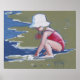 ¿Una niña con Gorra jugando en la arena con olas de playa alguna vez juegan en la playa con un niño? ¿Has jugado con la humedad de las olas y la arena de la arena? Se trata de un bonito cuadro de una niña que toca con las pequeñas olas en la orilla de la playa, un hermoso regalo para el luchador de la playa. Lleva puesto un traje de baño rojo y tiene un gran gorra blanco para protegerse del sol. El bebé de la playa es feliz jugando solo, concentrándose totalmente en la sensación de que el agua resbaladiza se balancea a través de las manos. Es un día de playa - un maravilloso día de playa para una niña, con un montón de agua salada para jugar, y un mundo de arena de playa para encontrar conchas, castillos de arena esculpida, y simplemente holgazanear al sol. Este es el regalo perfecto para el pequeño beachcomber en tu vida, y para la persona que ama el océano. Es un gran recuerdo de nuestra propia juventud en la playa, o tal vez se parece a tu propia hija o nieta en la playa. La imagen está basada en una pintura llamada "Agua Sandy" de la artista de Florida Mary Hubley.