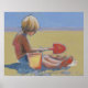 Niño jugando en la arena con una pala Este niño dulce está jugando en la playa con su pala roja brillante. ¿Jugaste en la arena de niño? Este es un hermoso cuadro de un niño que juega en la arena; es un clásico bebé de arena jugando en la playa. El niño está usando baúles azules de nado, tiene el pelo rubio, y es feliz jugando solo, concentrándose totalmente en construir su fuerte de arena. Tal vez él se parezca a tu pequeño que juega en la arena. Es un día de playa - un maravilloso día de playa con un montón de agua salada para jugar, y un mundo de arena de playa para encontrar conchas marinas, castillos y fuertes esculpidos, y simplemente holgazanear al sol. El niño está jugando en la arena de la playa, listo para llevar su balde naranja al borde del surf para llenarlo de agua salada. Este es el regalo perfecto para el peatón en tu vida, y para la persona que ama el océano. Es un gran recuerdo de nuestra propia juventud en la playa, o tal vez se parezca a tu propio hijo o nieto en la playa. La imagen está basada en una pintura llamada "Mi pala" de la artista de Florida Mary Hubley.