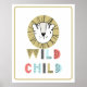 Adorable arte popular de estilo escandinavo tanto en el gráfico del león dulce como en las letras que deletrean "niño salvaje"