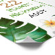 Niños Safari Animales Primer Cumpleaños Poster Cute predominantemente con temática verde y amarillo safari poster de cumpleaños con algunos animales de la selva, algo follaje, un globo amarillo, flores frangipani.