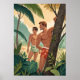 Dos chicos felices en el bosque tropical. Un ilustracion poster de estilo vintage.