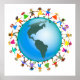 Personalizado ilustracion de un grupo de chicos y chicas felices y diversos tomándose de la mano alrededor de un globo con un mapa de América del Norte y del Sur. Imagen disponible en varios regalos y productos. Personalizar si lo prefiere y cambia el color de fondo o agrega algo de texto.