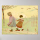 Hermosamente delicado ilustracion vintage de libros para niños franceses de dos niñas que salen a dar un paseo.