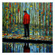 A.I. la impresión asistida de un hombre con un abrigo rojo se para en un camino reflejado en un cuerpo de agua adornada con piedras coloridas, rodeado por una escena surrealista de viñas colgantes y hojas circulares, que otros no quieren en su mundo.