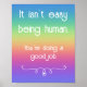 No es fácil ser un ser humano; estás haciendo un buen trabajo. Palabras con un giro y un diseño de corazón dibujados digitalmente a mano sobre un fondo degradado de colores arcoiris; perfectas para este elemento o transferirse a otros elementos en Zazzle. ¡personalizar si lo desea! Diseñado en el hermoso estado de Washington, EE.UU. por un dúo de artistas independientes.