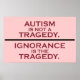 El autismo no es una tragedia. La ignorancia es la tragedia. Diseño simple de sólo texto de autistart.com.