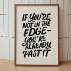 Atrévase a estar donde la mayoría no. Este sorprendente poster inspirador nos recuerda con fuerza: "Si no estás al borde del precipicio, ya lo estás pasando". Diseñado para aquellos que se esfuerzan por superar lo desconocido, esta minimalista y moderna impresión combina tipografía limpia con un mensaje audaz. Colóquelo en su espacio de trabajo, estudio o dormitorio para mantenerse afilado, tener hambre e inspirarse. Es más que arte mural - es un llamado motivacional para vivir plenamente, imponer límites y nunca conformarse.
