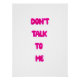 Explora nuestro llamativo texto rosa que dice "No me hables". Es la mezcla perfecta de diversión y relajación, haciendo que su espacio sea el único.