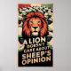 Abraza tu poder interior con nuestro diseño gráfico "A Lion no le importa la opinión de las ovejas". Esta sorprendente obra de arte combina un león real con texto audaz para representar fuerza y autoconfianza. Ideal para realzar la decoración de las paredes, las prendas de vestir y los accesorios, es la forma perfecta de afirmar su posición única y su actitud audaz. ¡Explora ahora y haz una declaración con el arte que exuda confianza e individualidad!