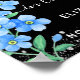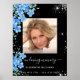 Personalice y agregue una foto, un nombre y fechas. Un clásico fondo negro con polvo de purpurina plateada falsa, decorado con flores azules no me olvides.