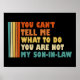 Vintage, no me puedes decir lo que tengo que hacer, no eres mi yerno, lentes graciosos para mujeres y hombres. Increíble vestimenta familiar para el suegro que ama a sus Hijos en la ley. Es un lindo traje de pareja para la suegra y el suegro. Diseño gráfico sarcástico con comentarios graciosos para suegro y suegra. Haga que su yerno se sienta orgulloso usando esta ropa o dándola como regalo para el cumpleaños, el día de la madre, el día del padre, la reunión familiar,...