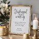 Este cartel de boda moderno sin enchufes presenta un estilo minimalista en negro y blanco con una mezcla de escritura a mano y fuentes de bloque simples. Será perfecto para pedirle a sus invitados que le permitan tener una boda privada libre de redes sociales.