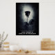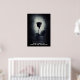 Un poster con un dicho: No te olvides de bailar a la luz de la luna. Diseñado con una misteriosa y oscura imagen de rosa negro de estilo gótico con sangre goteante roja en sus pétalos. Un fondo negro gris con un color blanco roto en el centro que resalta este rosa melindroso y macabro.