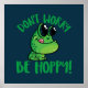 Una alegre rana personalizado con grandes ojos expresivos está acompañada por el lúgubre texto No te preocupes por ser adormilado en verde brillante. La lengua rosa de la rana se está extendiendo un poco. El fondo es un azul profundo que hace que la rana y el texto destaquen vibrantemente. Un gran regalo para los amantes de la rana. Etiquetas: rana, anfibio, personalizado, humor, feliz, divertido, rana toro, cita, alegre, lindo, peculiar, descabellado, verde, personaje, juguetón, alegre, sonrisa, texto, amistoso, azul, lengua, animal, tonto, inspirador, motivacional, vibrante, adorable, raro, tipografía