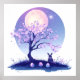 Una tranquila maravilla de medianoche con un conejo blanco mirando a una luna llena brillante en una escena nocturna serena.