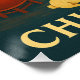Afiche de viajes estilo retro de la noche del Festival de Mediados de Otoño chino, una escena festiva bajo una gigantesca luna llena. Los animados bailarines de león con trajes rojos y dorados saltan alegremente, con tambores y farolillos iluminando la calle 2025.