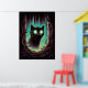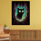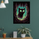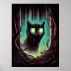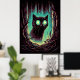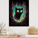 Un gato negro con ojos verdes penetrantes, situado en un bosque misterioso. Amoroso y espeluznante para los que aman a los gatos asquerosos.
