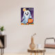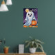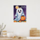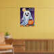 Ambiente conmovedor con este espeluznante poster con fantasmas espeluznantes y calabazas aterradoras en una noche oscura de Halloween. Perfecto para la decoración de Halloween.