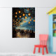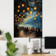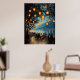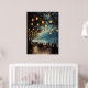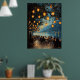 Sumérjase en el romanticismo de una velada junto al lago con esta impresionante impresión de arte. Cuenta con cálidas lámparas de araña colgando de los árboles, aguas serenas y una animada cafetería al aire libre. Ideal para añadir encanto y elegancia a la decoración de las paredes.