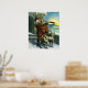 Póster Nochebuena vintage Santa Claus Telescope Dog Sunse