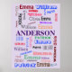 Nombre de familia El mensaje de Word Cloud personalizado será la estrella de tu próximo fiesta. Genial para cualquier familia. Tiene espacio para un apellido y cuatro nombres.