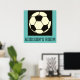 Este Poster de la Sala de Nombres Personalizados de la Bola de Fútbol negro, blanco, gris, verde azulado y azul es ideal para cualquier hincha o jugador de fútbol (europeo).