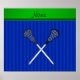 Póster Nombre personalizado lacrosse pala rayas azules
