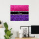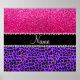 Ideas de regalo de leopardo modernas y de moda. Fondo del patrón de impresión animal del leopardo púrpura y purpurina rosado neón (no purpurina real) raya de diamantes negros (diamantes falsos, no reales) con corazones y puntos personalizados con sus regalos de nombre o regalos en monograma o sus iniciales. Ideal para cumpleaños, bodas, fiestas y mucho más con elegantes y tradicionales letras de fantasía.
