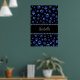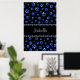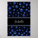Nombre personalizado, patas de perro azul brillantes sobre fondo negro. ¡Debes saber que obtienes una foto!