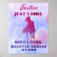 Este poster es perfecto para cualquier chica que tenga pasión por los caballos. Con un vibrante esquema de color rosa y morado, presenta el divertido y divertido mensaje "Just a Chica que ama a los caballos de cuarto" en letras audaces y elegantes. El diseño también incluye una silueta de un caballo, que hace hincapié en el tema y añade un elemento de interés visual. Es más, este poster puede ser personalizado con un nombre, lo que lo convierte en una adición verdaderamente única y especial a cualquier dormitorio o espacio habitable. Tanto si eres un ecuestre experimentado como si simplemente te gusta la gracia y la belleza de los caballos, este poster le dará un toque de personalidad y encanto a cualquier habitación.