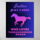 Este poster es perfecto para cualquier chica que tenga pasión por los caballos. Con un vibrante esquema de color rosa y azul, presenta el divertido y divertido mensaje "Just a Chica Who Love Thoroughbreds" en letras audaces y elegantes. El diseño también incluye una silueta de un caballo, que hace hincapié en el tema y añade un elemento de interés visual. Es más, este poster puede ser personalizado con un nombre, lo que lo convierte en una adición verdaderamente única y especial a cualquier dormitorio o espacio habitable. Tanto si eres un ecuestre experimentado como si simplemente te gusta la gracia y la belleza de los caballos, este poster le dará un toque de personalidad y encanto a cualquier habitación.