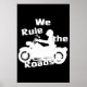 Este arte mural es para el ciclista o ciclista de corazón. Un gráfico de un motociclista acompañado de las palabras "Nosotros gobernamos los caminos". Compra tal cual o personalizar para cambiar el color del poster.