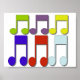 Notas musicales diseño impreso en diferentes colores como , rojo, púrpura, amarillo, verde, azul,