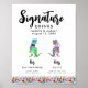 Añada un rugido de emoción a su boda con este divertido y colorido Rótulo de Boda Dinosaur Bride y Groom Signature. Con encantadores ilustraciones acuáticos de una novia y un novio T-Rex con un vibrante prado de flores silvestres de acuarela, este signo es la mezcla perfecta de juguetón y romántico, ideal para una temática boda inspirada en el boho. Con plantillas fáciles de usar en escritura moderna y elegante y tipografía, personalizar este signo es una brisa, simplemente agregar tu cóctel o bebida favorito, junto con los nombres de la pareja de dinos y la fecha boda. Creada por la talentosa artista Catherine Sweetman, esta obra de arte original será un éxito para sus invitados, haciendo que su celebración sea tan inolvidable como divertida. Eleva tu boda con la temática de los dinosaurios con este delicioso toque que seguro hará una declaración!