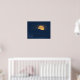Basado en una fotografía original de una luna de oro levantándose a través de nubes azul profundas, con acento digital y mano.