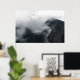 Póster Nubes blancas sobre las oscuras montañas rocosas
