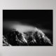 Fotografía paisajística de larga exposición de nubes que se movían por encima de los nevados Alpes eslovenos convertidos en negro y blanco profundo.