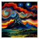 A.I. creó una impresión de nubes surrealistas de tormenta iluminadas mientras se deslizan a través de un cielo celestial nocturno de estrellas, luna y planetas sobre un paisaje de montañas vibrantes y colinas ondulantes