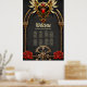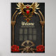 Nudos celtas y un corazón de elegancia gótica. Los marcos de inspiración gótica incluyen elegantes arcos dorados y columnas que recuerdan a las catedrales góticas. Estos elementos están muy bien diseñados y decorados con complejos estampados de nudos celtas. Un emblema del corazón alado, decorado con joyas rojas vibrantes, se sienta en el centro superior del cuadro. El fondo del cuadro está dominado por un diseño de cráneo dorado que simboliza la fuerza y el misterio.