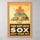 Poster Patriótica de la Primera Guerra Mundial para las mujeres motivadoras de la Cruz Roja de Estados Unidos en la cancha de la casa para proveer de sox a las tropas, 1918.