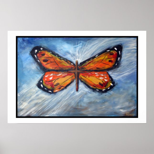 Esto fue pintado durante un servicio de culto en vivo en mi iglesia. La mariposa monarca es simbólica de la metamorfosis experimentada por un cristiano cuando experimentan una nueva vida en Jesús. El cuerpo de la mariposa está representado por la cruz de Cristo. La mariposa está flotando en la brisa que representa el Espíritu Santo.