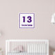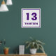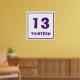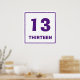 Púrpura número trece sobre fondo blanco con borde morado. Ayuda a tu pequeño a aprender los números con este diseño de 13 números.